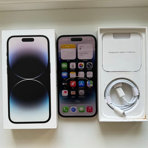 Iphone 14 Pro i guld med 128gb i god stand og batteriet er stadigvæk godt inkl æske og opladerkabel.