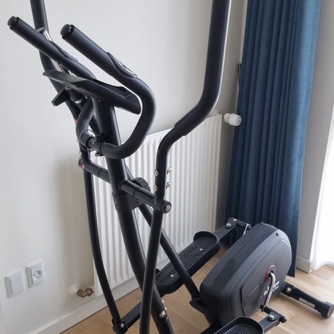 Crosstrainer i sølv og sort. Velegnet til konditionstræning og helkropstræning i hjemmet. Maskinen har et kompakt design, der gør den egnet til mindre rum som stue eller soveværelse. Træningsudstyret kan bruges til både opvarmning og længere træningspas afhængigt af behov og niveau.