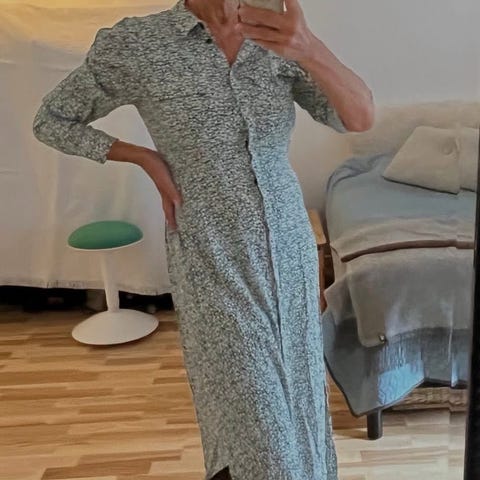 mbyM Bedelia bluse i størrelse L. Blusen er multifarvet med små blomster og har lange ærmer, krave og knaplukning foran. Taljen er markeret med elastik og har en let peplum-effekt forneden. Materialet er 100 % viskose (EcoVero), som giver et blødt og let fald. Velegnet som hverdagsbluse eller til mere pæne anledninger.