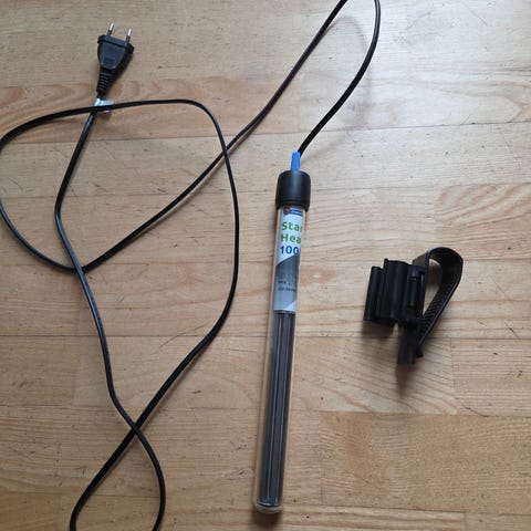 Eheim Jäger 3022 akvarievarmer med effekt på 50W. Velegnet til opvarmning af akvarievand. Tilslutning til 220–240V. Cylindrisk glasvarmer med justerbar temperaturregulering på toppen og fastmonteret strømkabel med stik.