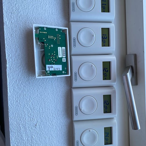 Har tre ganske sjældne TP82IR-NW til Wavins udgåede 8000 serie som måler temperaturen via infrarød. Er mere præcist end almindelige TP82-NW.