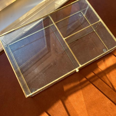 Glas smykkeskrin. L 20.5 cm D16 H8