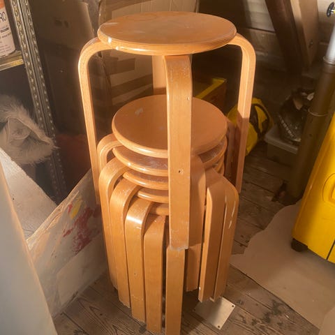 Fire skamler i fyrretræ.