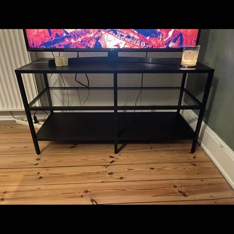 IKEA Vittsjö tv bord møbel i sort med glas hylder.