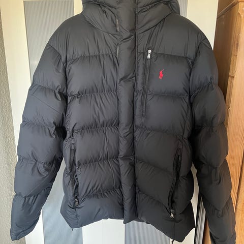 Polo Ralph Lauren dunjakke i mørk blå, (næsten sort), brugt i 3 måneder. Rigtig god stand, ingen synlige brugsspor. Købt for 2.500 kr.