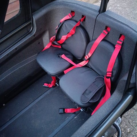 Brugt meget sparsomt, kørt 571 km, nem at køre, og fylder ikke så idiotisk meget som mange andre ladcykler. Der medfølger kaleche og puder som et ekstratilbehør