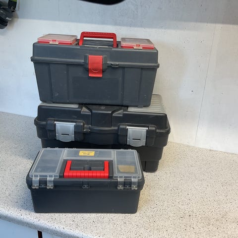 Sortimentskasser og værktøjskasser i plast med transparente låg og indsatsbokse i forskellige størrelser. Kasserne er stabelbare. Nogen er helt nye, og nogen har indhold. Sælges billigt da de fylder for meget i mit skur.