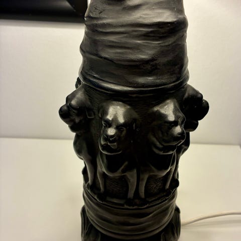 Bunden af lampen er formet som åkandeblade med knopper.
