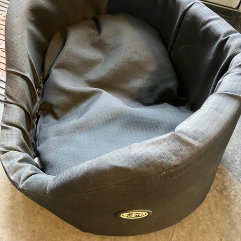 Buster hundeseng i brun farve. Rektangulær pude med blød overflade, egnet som liggeplads til hund. Kan bruges direkte på gulvet eller i bur/transportkasse, afhængigt af størrelse på hund og behov.