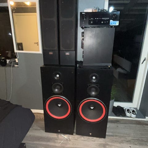 2 stk fantastiske vellydende højttaler, med 15"bas, 8"ml tone, 500 watt