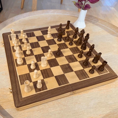 Skakbord med skakbrikker træ rektangulær