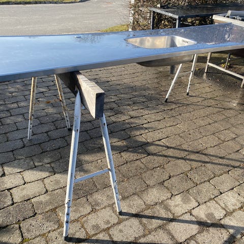 Har flere forskellige bordplader med vaske og bordplader med understel