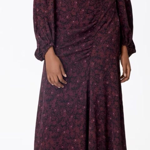 Gestuz hverdagskjole i str. M. Kjolen er i multifarvet mønster og fremstillet i viskose. Modellen har korte ærmer, gennemgående knaplukning foran og slids forneden. Pasformen er lang og løs, egnet som hverdagskjole til dame. Kan sendes med DAO for 43kr