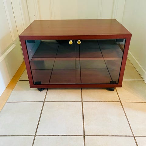 Et pænt TV-møbel i sort stål og ægte træ. Sælges kun da der ikke er plads til den efter flytning.
