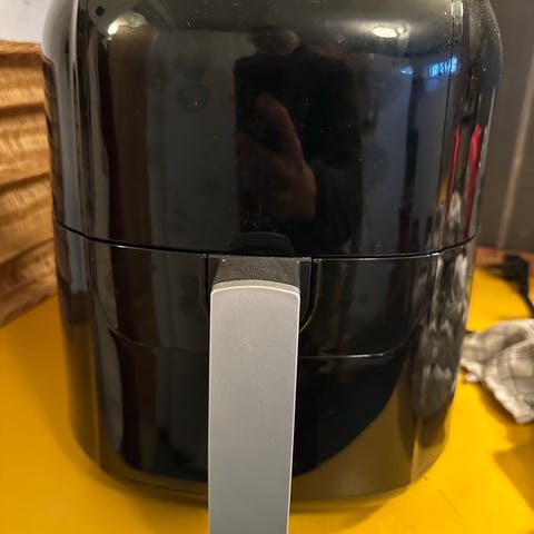 Emerio airfryer i sort. Enheden har aftagelig kurv med perforeret bund til cirkulation af varm luft. Velegnet til tilberedning af f.eks. pommes frites, grøntsager eller mindre kødretter uden brug af meget olie. Strømtilslutning via ledning. Yderligere tekniske specifikationer som kapacitet og effekt er ikke oplyst.