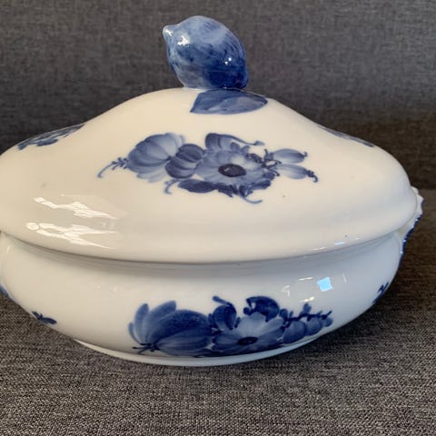 Royal Copenhagen oval lågfad i blå blomst flettet