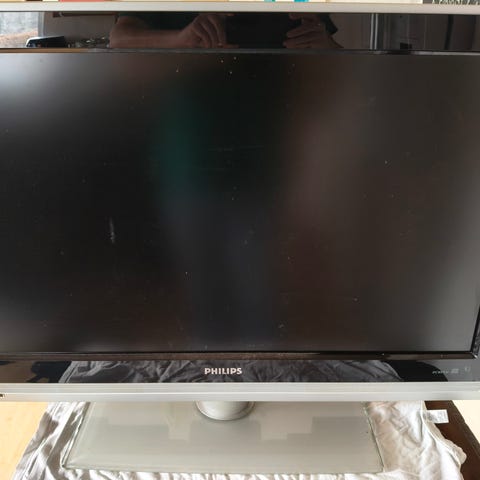 Philips fladskærms-tv i sort kabinet. Tv’et har indbygget bordstand og tilslutningsmuligheder på bagsiden, herunder blandt andet SCART, VGA og analoge lydindgange. Leveres med fjernbetjening og strømforsyning som vist på billederne. Velegnet som almindeligt tv eller som skærm til ældre medieenheder via de tilgængelige porte.