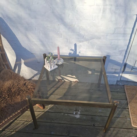 Super fint og populært sofabord i messing fra Ellos (modellen Georg). Pt udsolgt hos Ellos. Det er en aftagelig bakke, og ben der kan klappes sammen.