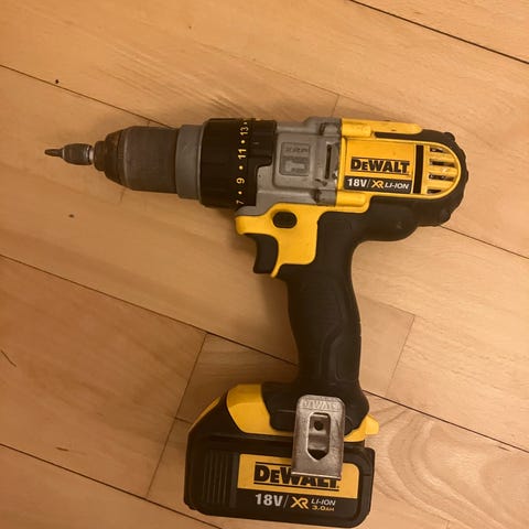 DeWalt XR akku boremaskine 18V i gul/sort. Inklusiv batteri og oplader sælges til 600kr