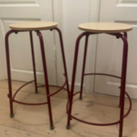 2 stk. hvide høje taburetter i slidt hvidt look. Muligvis fra Ib Laursen.