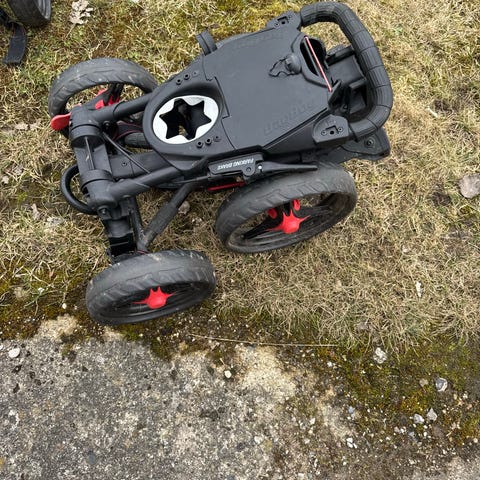 Golfvogn 3-hjulet sammenklappelig sort