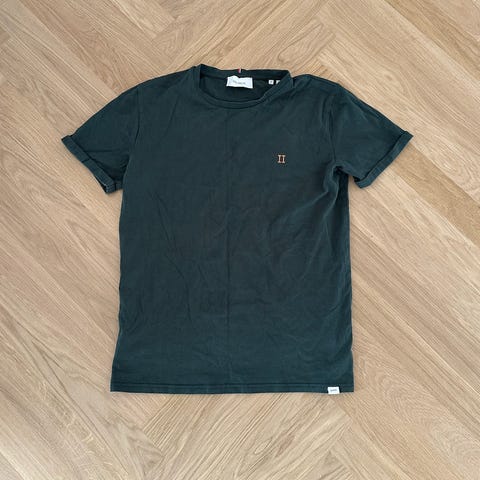 Les Deux t-shirt til herre i størrelse M. T-shirten er grøn og fremstillet i bomuld. Klassisk model med rund hals og kortærmet design. Velegnet til hverdagsbrug alene eller under en trøje eller jakke.