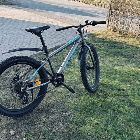 24¨¨CUBE, stelhøjde 300 mm, tandhjul og kæde er næsten ny, nye dæk+nye slanger, dobbelt bundet alu fælge, affjering i forgaffel nye bremser for+bag, magnet lygter, drikkedunk hplder, ny lås m nøgler, ingen rust alt er alu, smurt og efterset, passerfra ca 140 cm,,, rigtig fin begynder mtb,