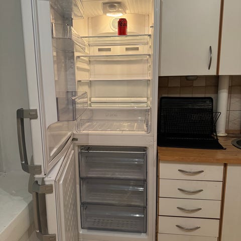 Beko køleskab i hvid. Fritstående model med flere justerbare glashylder, grøntsagsskuffe i bunden samt dørhylder til opbevaring af flasker og mindre varer. Indvendigt lys og separat hylde til fx flasker eller dåser. Velegnet til køkken, bryggers eller som ekstra køleskab.