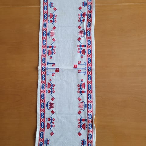 Bordløber, broderet, fødselsdag, 1980, Ca. 76 x 23 cm.