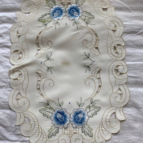 Bordløber, broderet, fødselsdag, 1980, Ca. 76 x 23 cm.