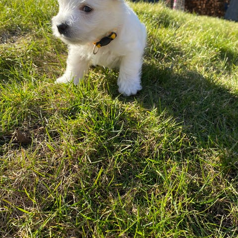 West Highland White Terrier tæve på ca 6 måneder købes til godt og trygt hjem. Selvfølgelig ikke DDA "stamtavle"