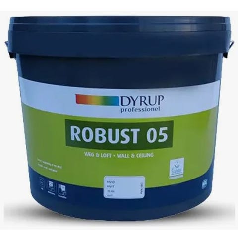 Dyrup professionel maling i glans 10, fåes i farverne ral 9010(4 stk.) og 8014 råhvid(9 stk.), 10 L/ spand.