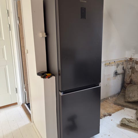 Sælges fordi lågerne ikke kan vendes, fejler intet. Kan købes fra den 12. marts Åbner for venstre til højre 184cm højt 59 cm bred 65 cm dyb- Frys 80 køleskab 1 m og 3 cm Frys 3 skuffer- køl 4 hylder 1 grøntsagskuffe