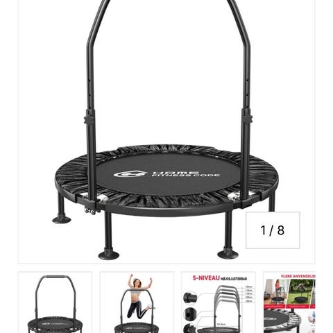 Jump trampolin med håndtag i blå farve. Rund fitness- og hoppe-trampolin med polstret kant og stabilt stel. Udstyret med håndtag/bøjle til støtte under brug. Velegnet til indendørs træning, balanceøvelser og leg for både børn og voksne.
