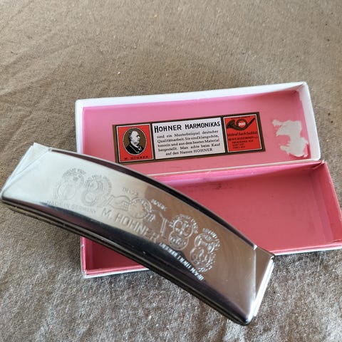 Instrumentet er taget i bytte i forbindelse med handel med en harmonika.