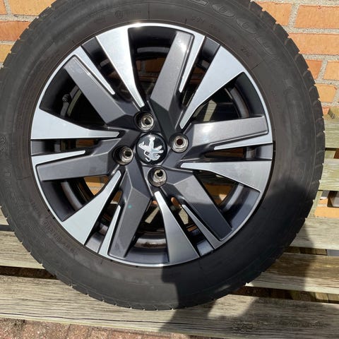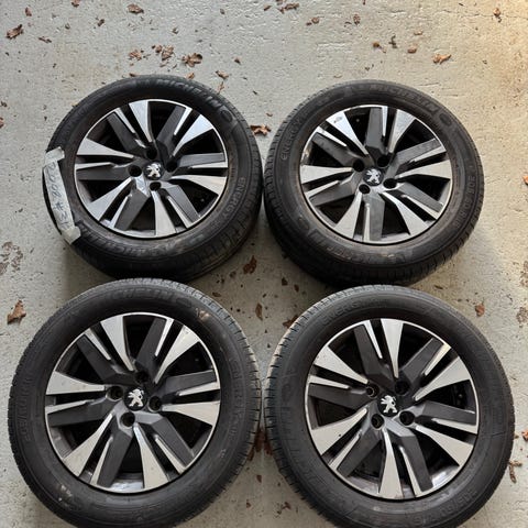 4 stk org Peugeot E2008 fælge model Elborn farve Gris Anthra (Grå) uden en skramme fra dec 2022 (dæk er produceret i 2021) Org Bolte medfølger, og blank låg til bolte