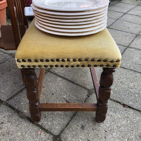 Taburet i træ i brun finish. Egnet som ekstra siddeplads eller lille skammel i fx stue, entre eller soveværelse.