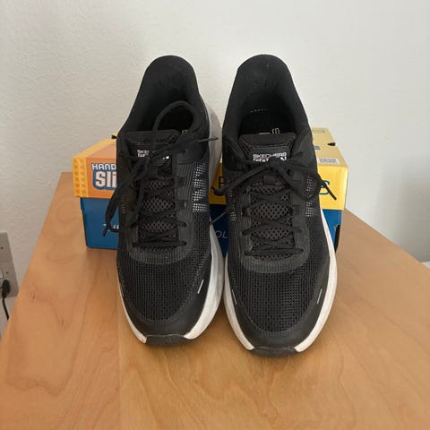 Dejlig skechers Solar Fuse sneakers lavet i lys grå mesh tekstil med snørelukning over vristen, den er lavet med Air Cooled Memory foam indlægssål og en fleksibel mellemsål. Skoen har nogle flotte detaljer i form af pastel grøn og lyserød farver der giver et flot og sommerlig look til den bløde sneak der egner sig både til træning og fritid. Ydersålen er lavet i EVA. Nypris 800 kr. stor str. 39, indvendigt mål: 26 cm. Brugt en gang.
