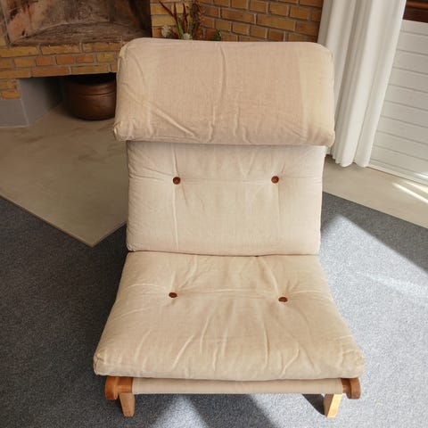 Original kludestol af Bernt Petersen. Stellet er i god stand, men “løberen” på betrækket trænger til at blive skiftet