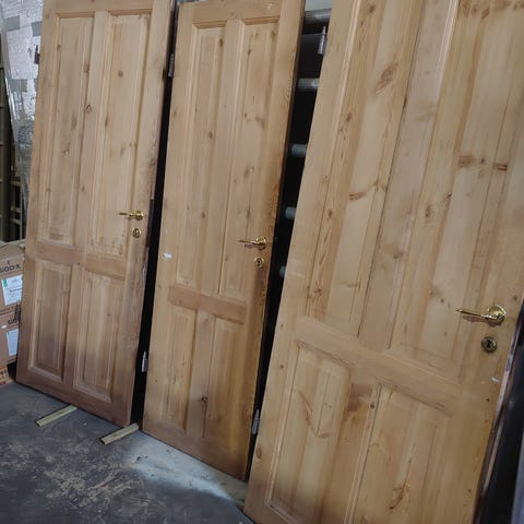Dannebrogsdøre m. Karm i fyrretræ.