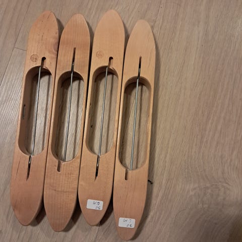 Fint stort udvanlg af skytter til væve, nogle mere simple og en af flot kvalitet. Brugte men fejler intet.