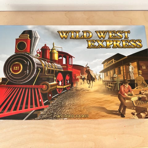 Retro Wild West brætspil med tema fra det vilde vesten. Spillet indeholder illustreret spilleplade, papirpenge i forskellige værdier, spillebrikker, terning og små tilbehørsdele. Kassen er bulet og med mange skrammer. Lugter af loft, og det mangler tror jeg brikker.