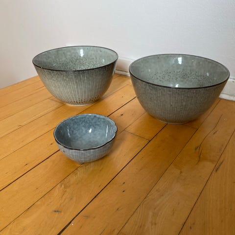 Sælger Broste Copenhagen Nordic Sand skåle, 8 stk. 17 cm og 8 stk. 22,5 cm.