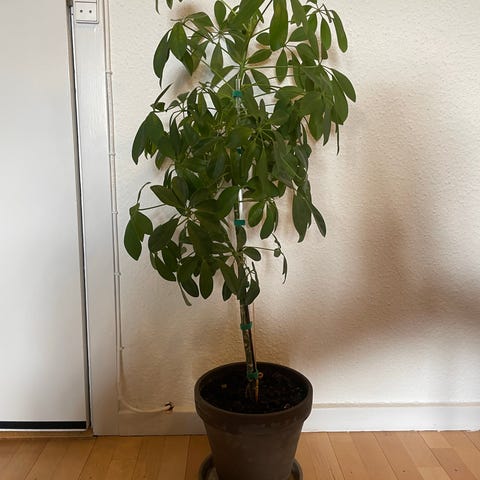Zamioculcas zamiifolia stueplante med blanke, grønne blade. Planten står i en sølvfarvet potte og egner sig som indendørs pynteplante i stue, kontor eller gang. Kræver typisk moderat lys og vanding efter udtørring af jordoverfladen. Velegnet som dekorativ grøn plante i hjemmet.