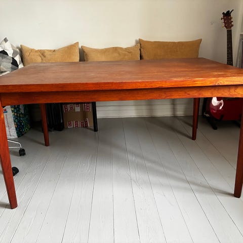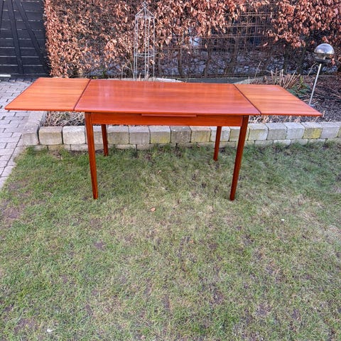 Spisebord i teaktræ med skjult Hollandsk udtræk.