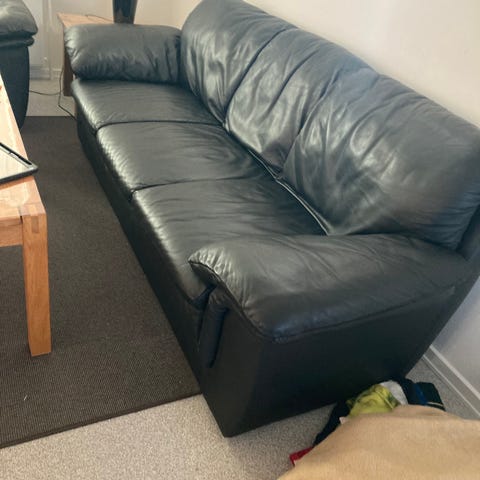 Sort 3 personers lædersofa.