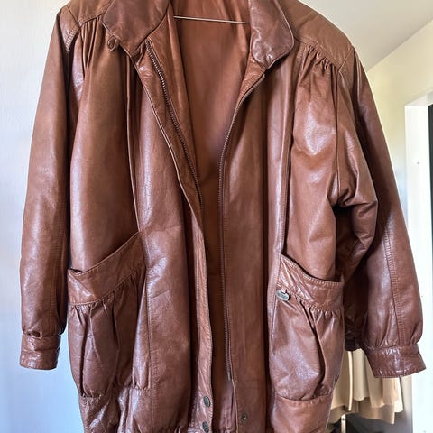 Damejakke i ægte læder brun str. M