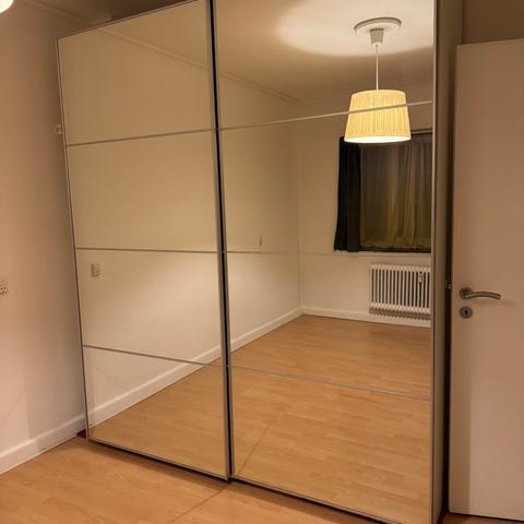 Fint spejlskydedør fra IKEA kan hentes på Rebslagervej 20, 2400 København NV. Spejlet skal selv bæres ned fra 4. sal.