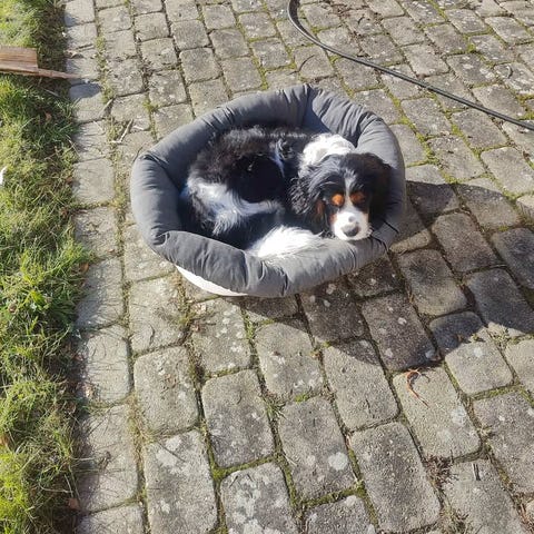 Faktisk nød hundene at de kunne strække ben i denne og det at de lå lidt højt (træk undgås) Plus hyggen/trygheden i væggene =huleagtig