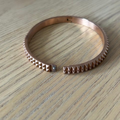 Denne ring er et statement-stykke med sit unikke design. Den har en bånd med flere kegleformede nitter.